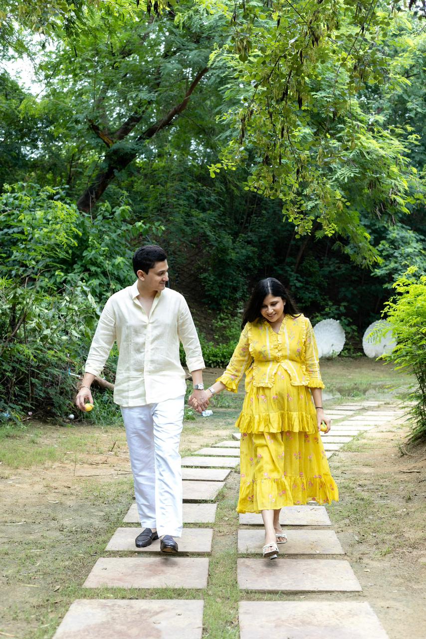 Designed for expecting mothers, this Chanderi maternity dress blends comfort with effortless elegance. The flowy three tiered silhouette offers ample room for a growing bump while draping beautifully at every stage of pregnancy.